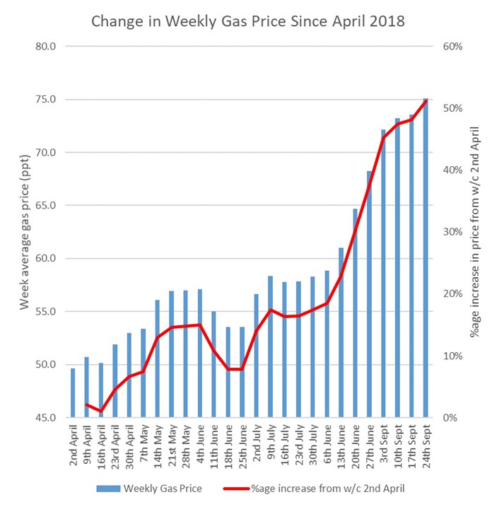 2018 has been an unusual year for energy costs, with gas prices in the UK & Europe soaring over the summer. Since April, the price of UK wholesale gas has increased by 50%, reaching levels not seen for the past decade.